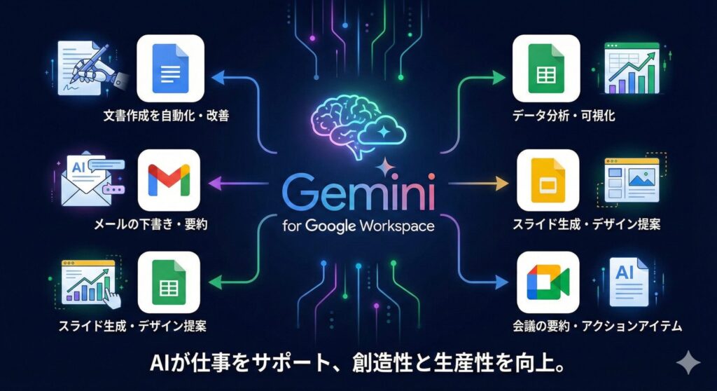 【完全保存版】Gemini for Google Workspace徹底解説!全アプリのAI活用術まとめ