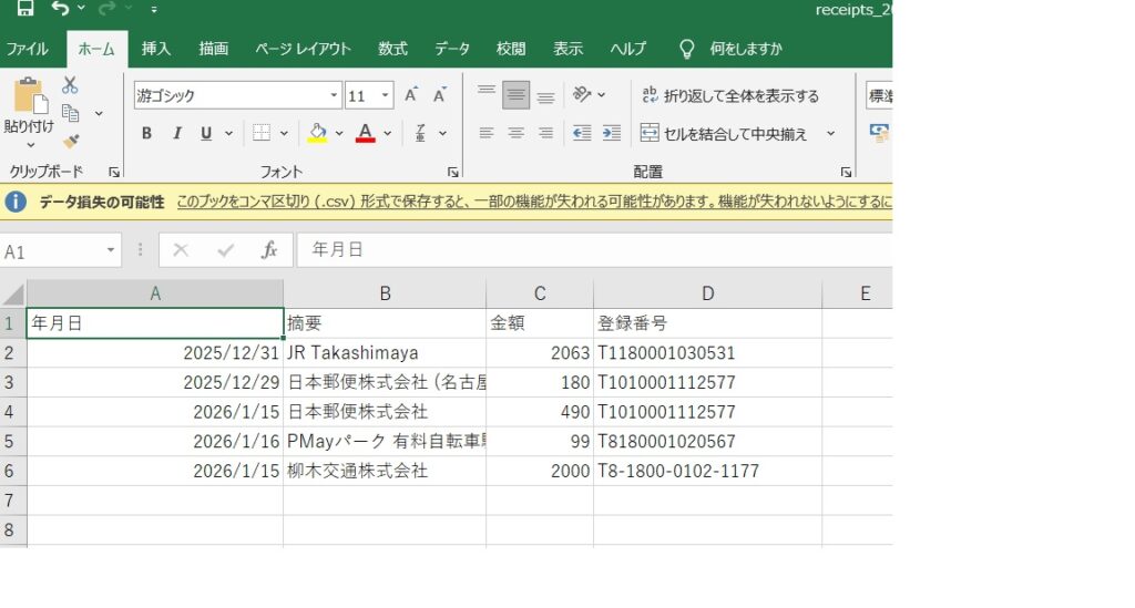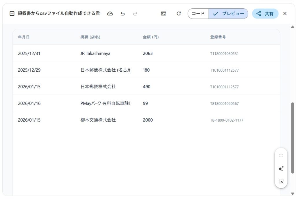 ✨領収書からcsvファイル自動作成できる君✨