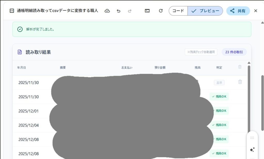 【✨便利アプリ✨】通帳明細読み取ってcsvデータに変換する職人