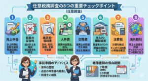 調査の流れを理解し、事前通知から当日の対応までを落ち着いて進めましょう。デジタル化が進む今、データの適切な管理も重要です。信頼できる税理士と連携し、売上増加のチャンスを安心して掴み取ってください。
